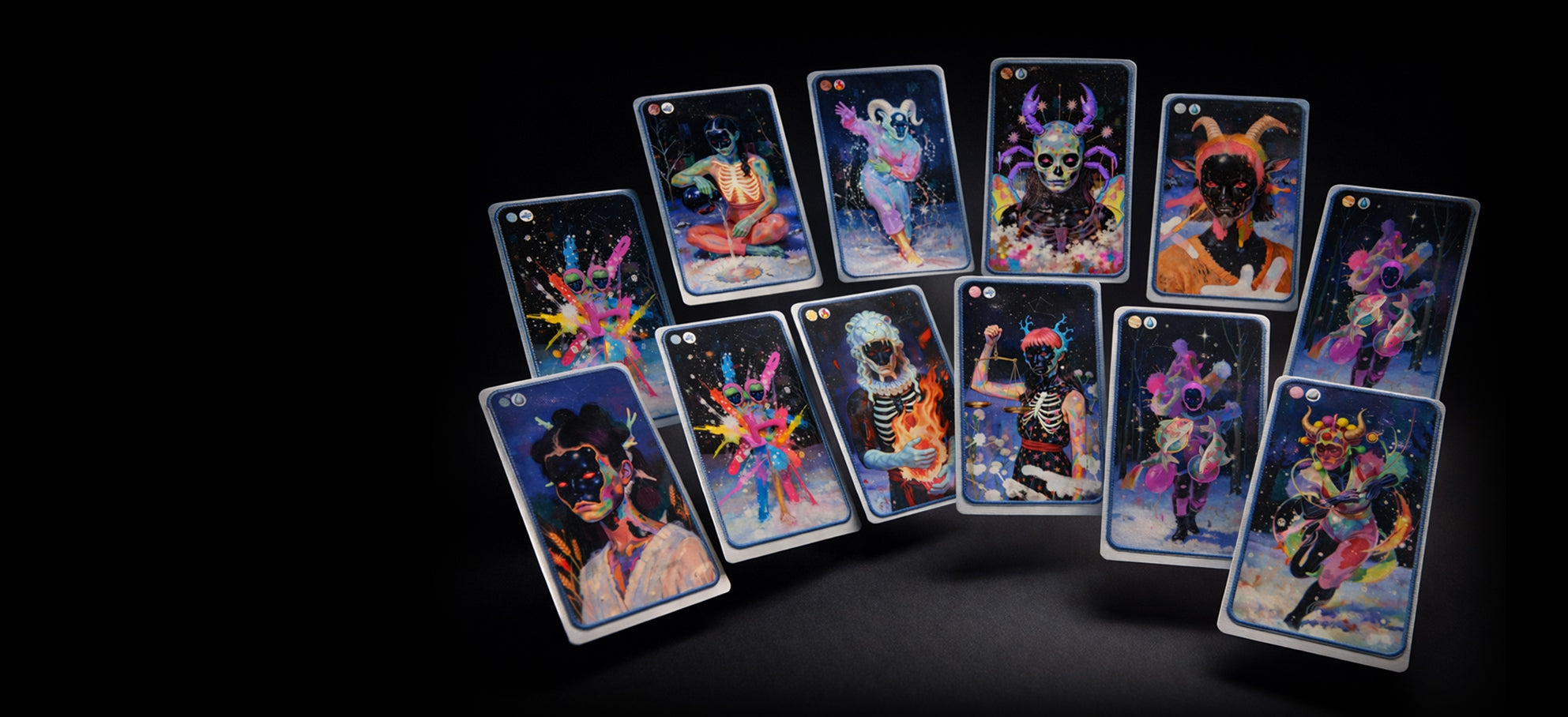 A new evolving set of digital trading cards, inspired by the cosmos and illustrated by XSULLO.